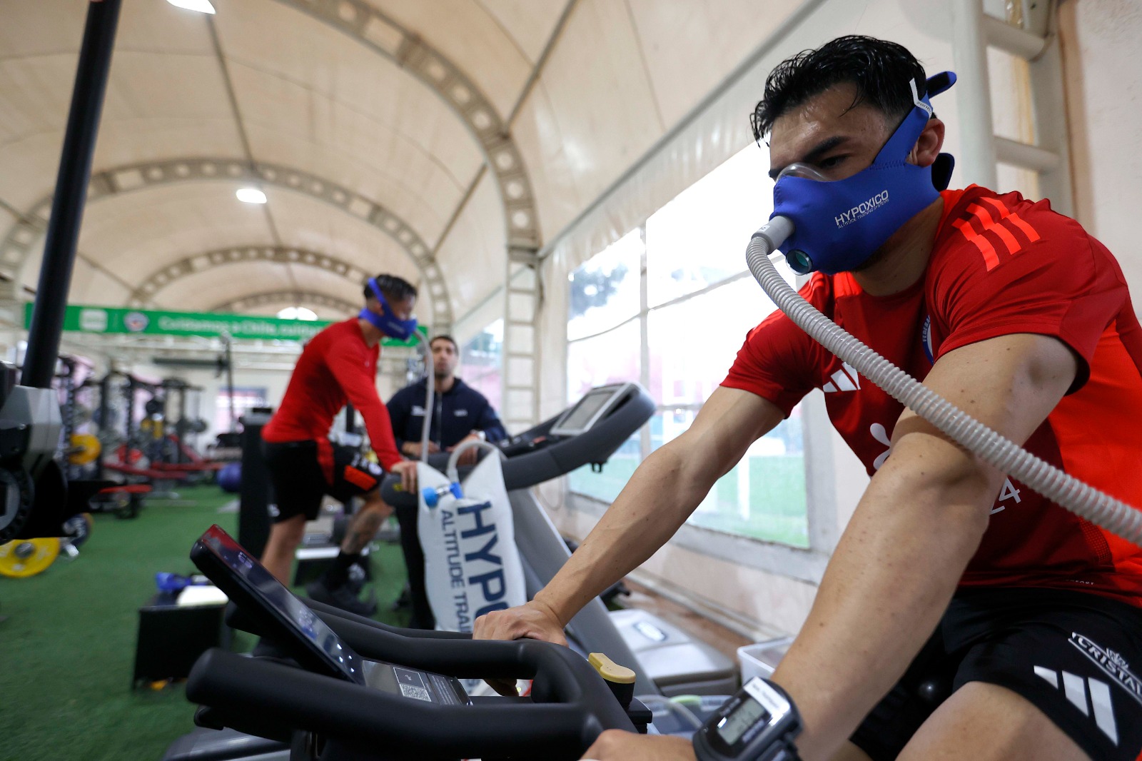 El preparador físico de la Roja, Néstor Bonillo, explicó que se está utilizando un equipamiento especial que simula las condiciones que tendrán en El Alto. “Afortunadamente conseguimos, a través del departamento médico, un equipamiento que está simulando la altitud. Con eso hacemos tareas y un diagnóstico de cada jugador”, detalló. Además, usan máscaras que regulan la cantidad de oxígeno, parecida a la que habrá en la ciudad boliviana.